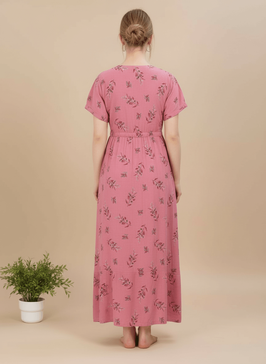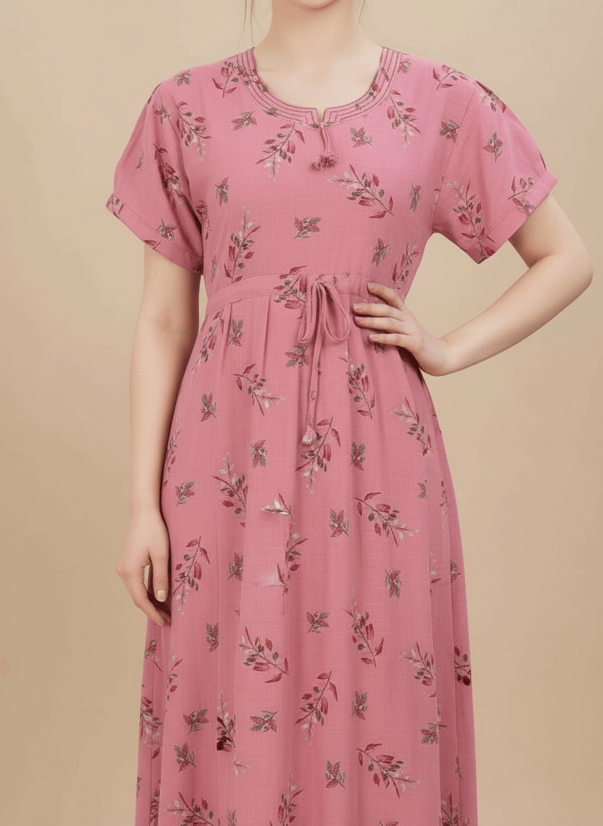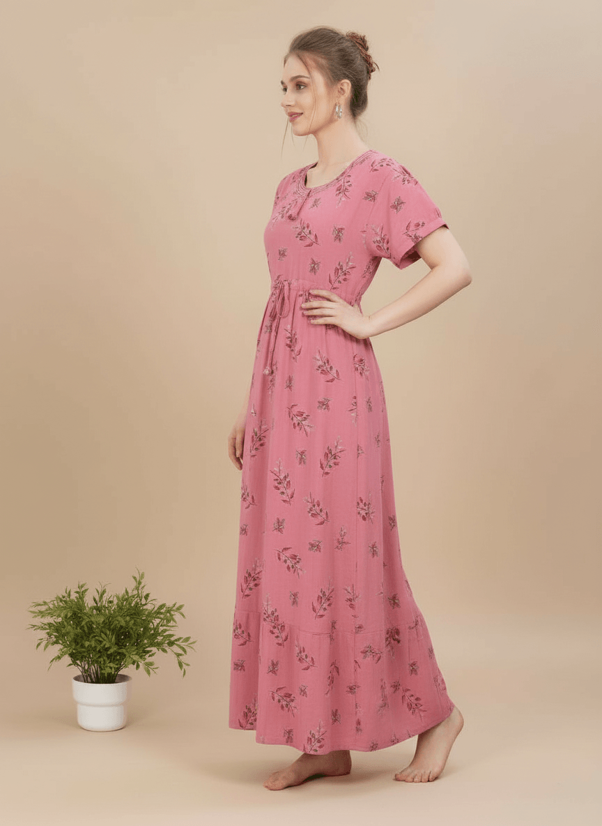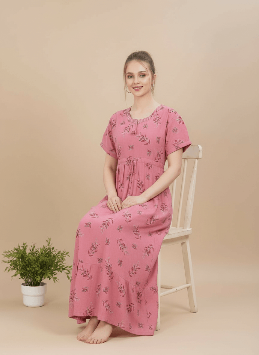 Experience the Monisha nightgown: a premium Supima Cotton Umbrella Nightgown designed for effortless comfort and timeless elegance. Crafted from the finest Supima Cotton, it’s a zero-maintenance piece — no shrinkage, no color bleeding, and absolutely no ironing needed. Its unique three-layer umbrella flare gives it a beautiful flow and adds a touch of everyday luxury. Perfect to lounge in or wear throughout the day, the Aarohi nightgown combines comfort with chic sophistication.