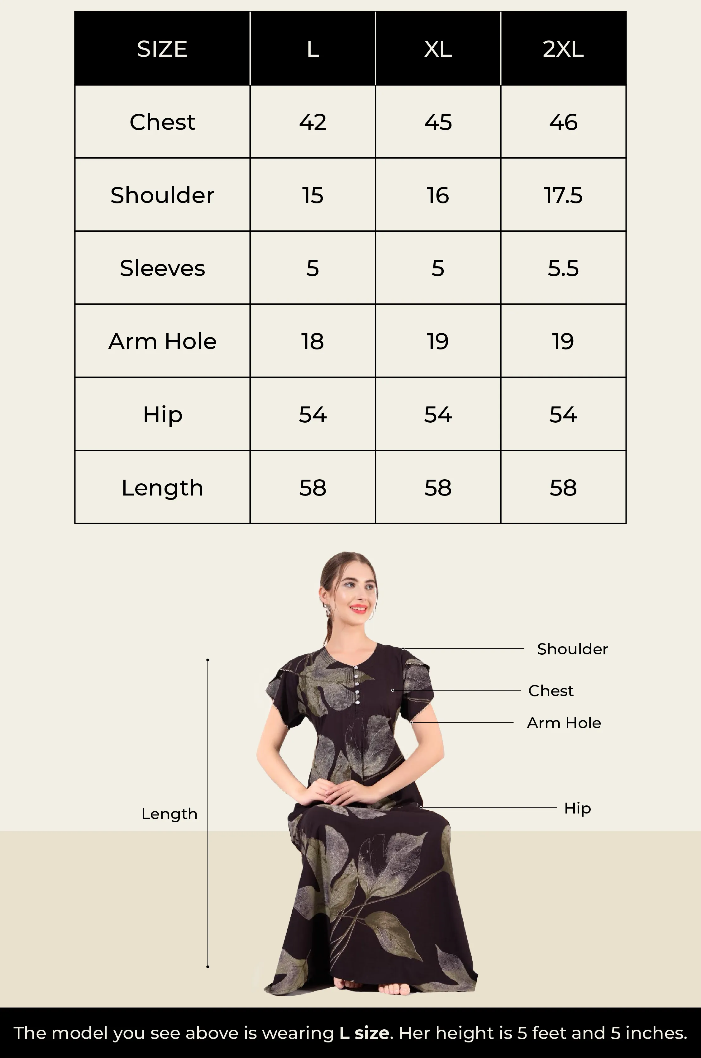 Experience the Mahira nightgown: a premium Pure Rayon Nightgown that’s soft, breathable, and beautifully smooth on your skin. Its elegant double fancy sleeves and simple, graceful design make it perfect for women who love comfort with a touch of style. Designed for effortless wear, the Amy nightgown drapes beautifully and feels cool all day long.
