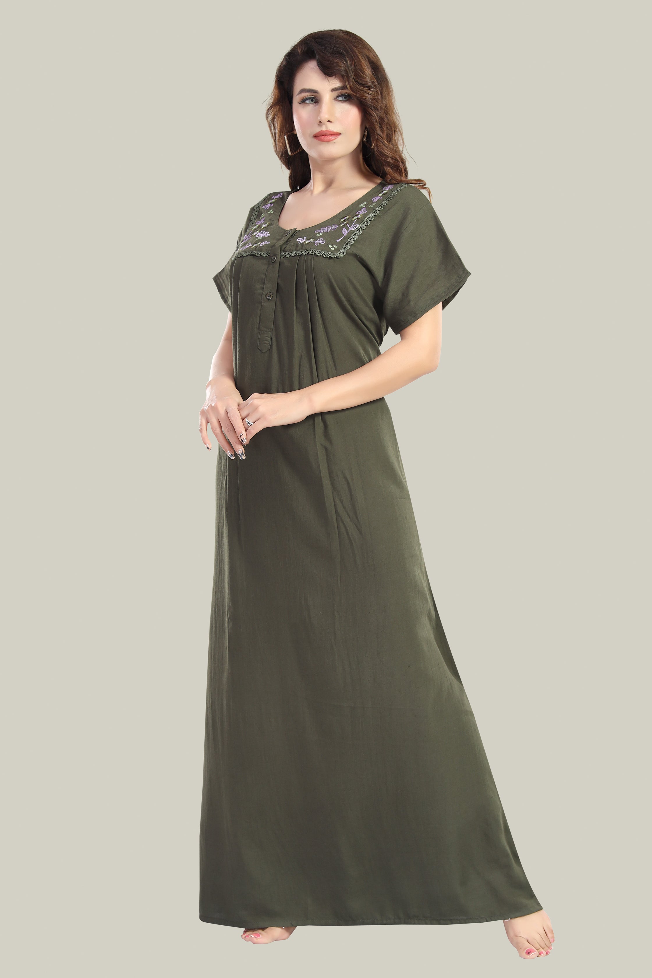 Experience ultimate comfort in our Monali bamboo cotton nightgown. Made from ultra-soft bamboo cotton, it ensures maximum comfort and style for your nights. The front pleats and elegant embroidery add a touch of sophistication, while the pocket offers functionality. Enjoy its no-shrinkage, no-color-bleeding, and no-ironing benefits for hassle-free care.