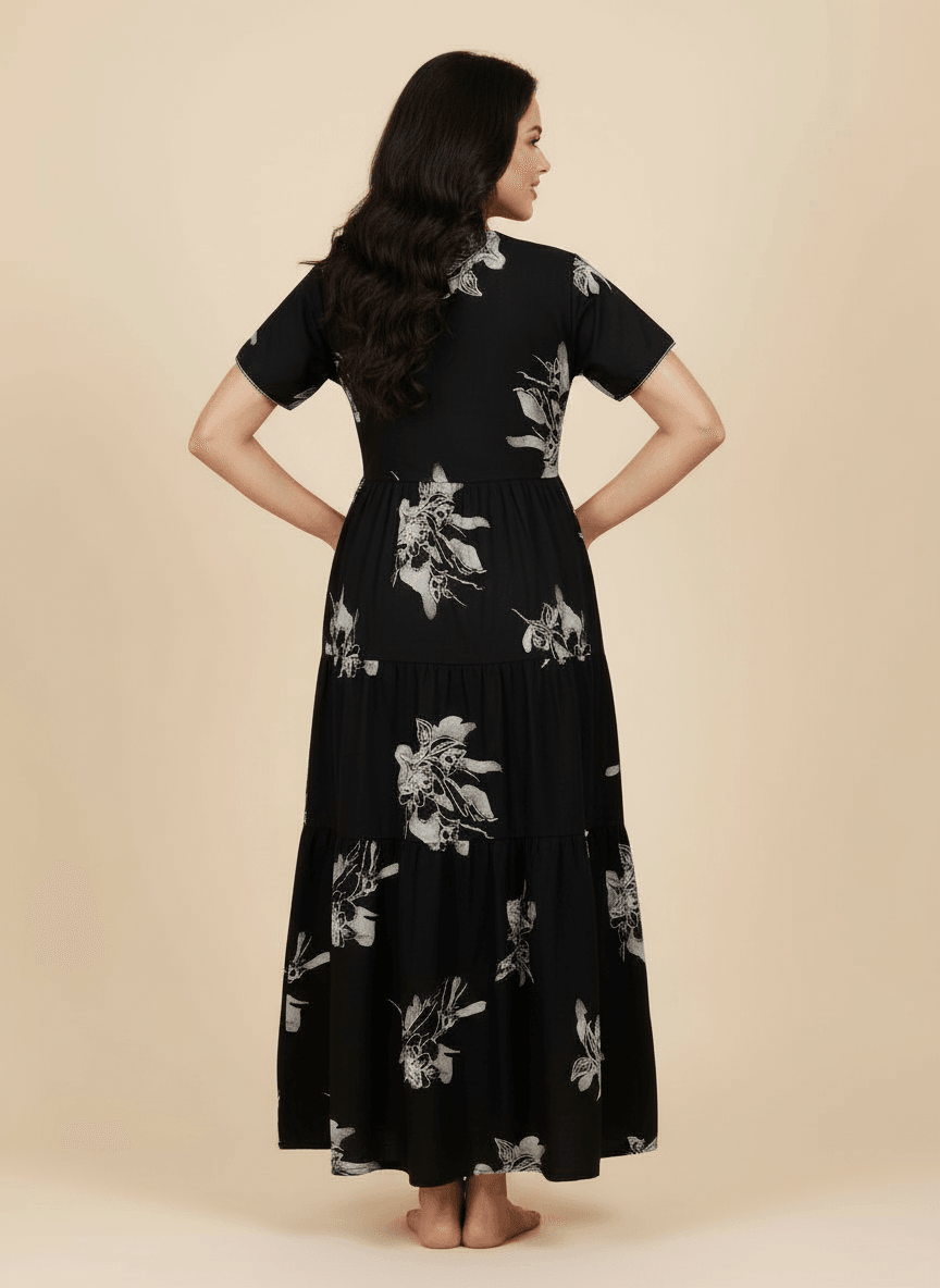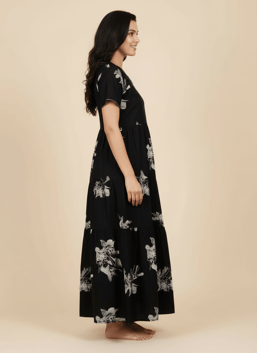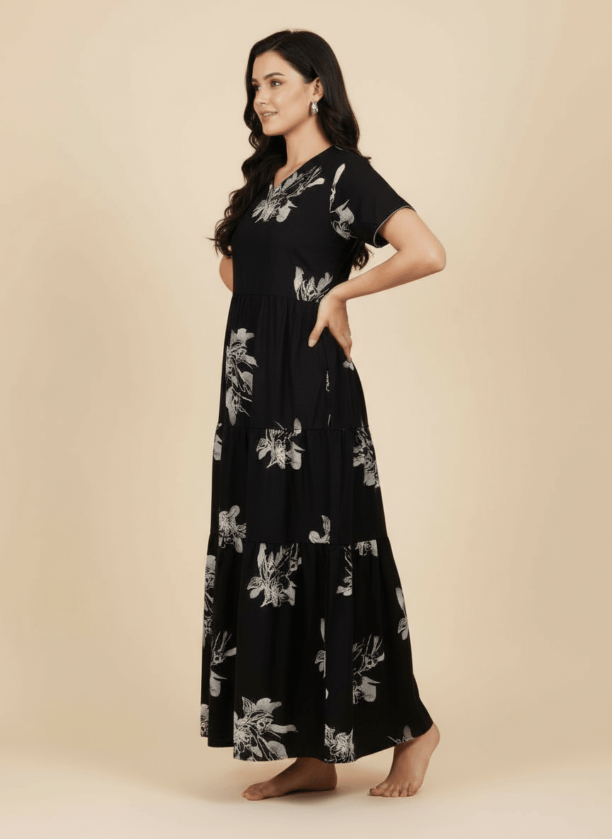 Experience the Ziva nightgown: a premium Supima Cotton Umbrella Nightgown designed for effortless comfort and timeless elegance. Crafted from the finest Supima Cotton, it’s a zero-maintenance piece — no shrinkage, no color bleeding, and absolutely no ironing needed. Its unique three-layer umbrella flare gives it a beautiful flow and adds a touch of everyday luxury. Perfect to lounge in or wear throughout the day, the Aarohi nightgown combines comfort with chic sophistication.