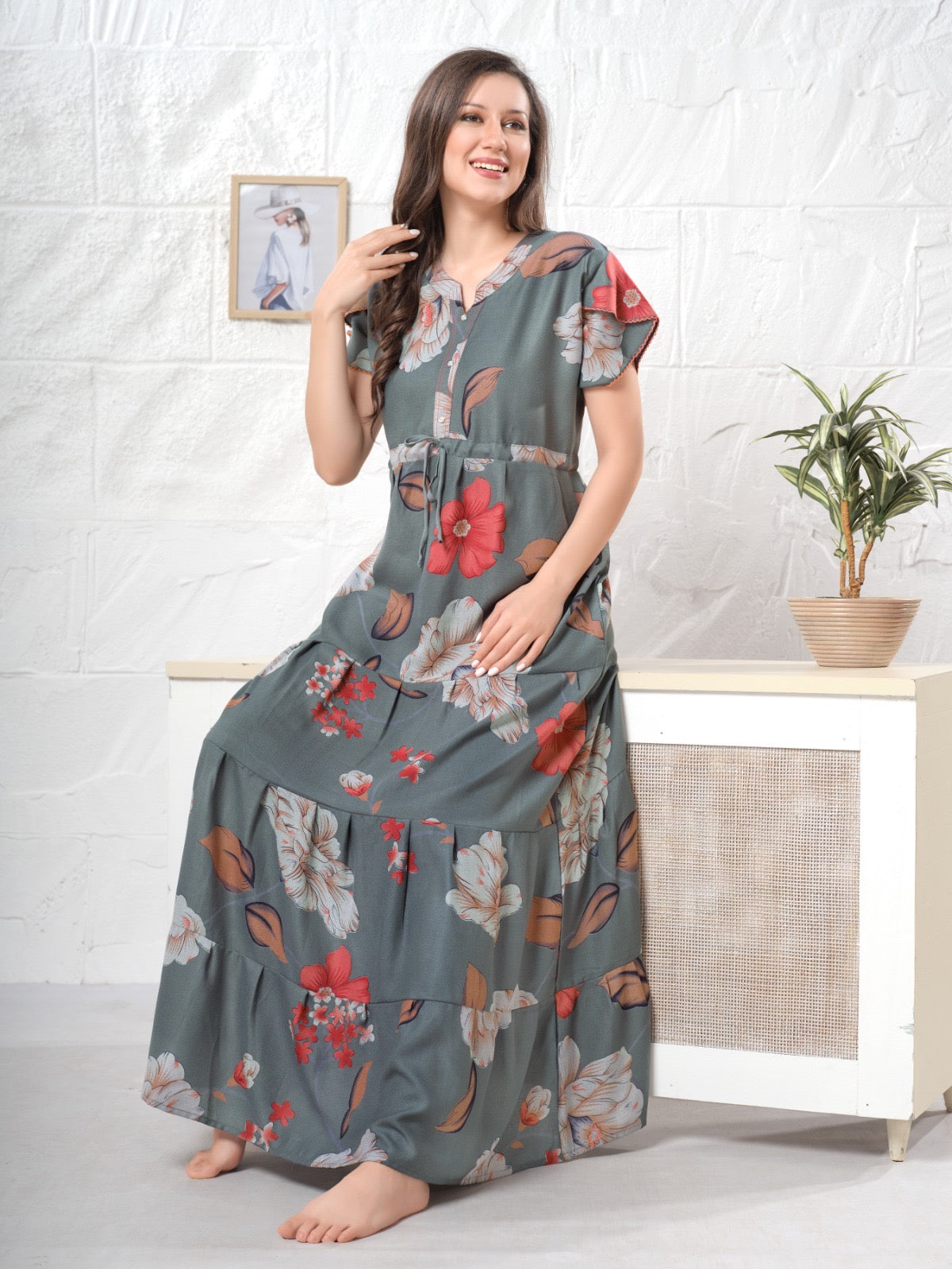 Experience the Emma nightgown: a premium Supima Cotton Umbrella Nightgown designed for effortless comfort and timeless elegance. Crafted from the finest Supima Cotton, it’s a zero-maintenance piece — no shrinkage, no color bleeding, and absolutely no ironing needed. Its unique three-layer umbrella flare gives it a beautiful flow and adds a touch of everyday luxury. Perfect to lounge in or wear throughout the day, the Aarohi nightgown combines comfort with chic sophistication.