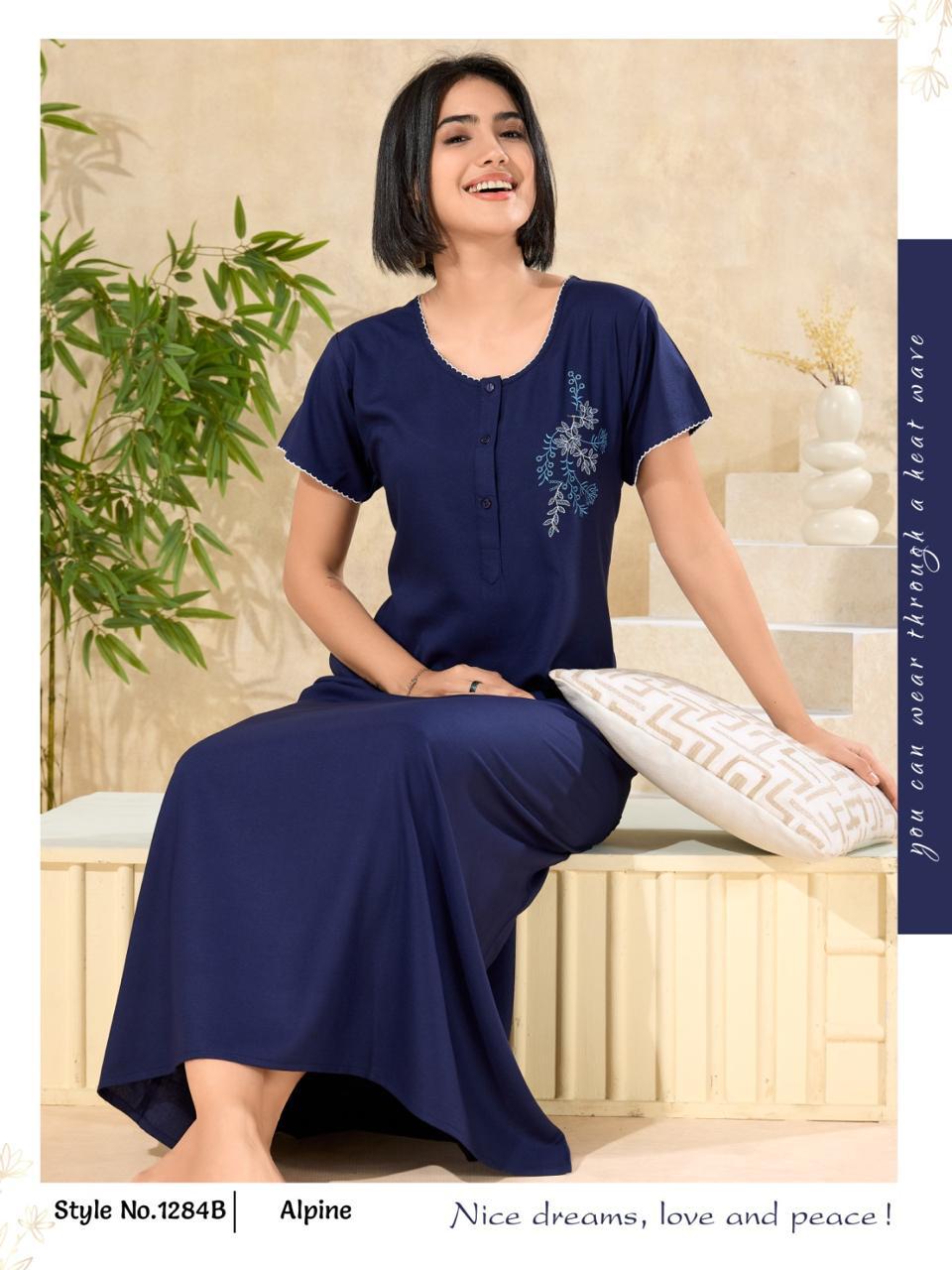 This nightgown is made of Supima Cotton Fabric. Our Supima Cotton Fabric nighty is made from a luxurious blend of fabrics, including 12% pre-combed Alpine cotton, 37% Rayon, and 51% Polyester. This unique combination ensures a breathable and comfortable experience. The fabric is gentle on the skin, making it perfect for all-day wear.