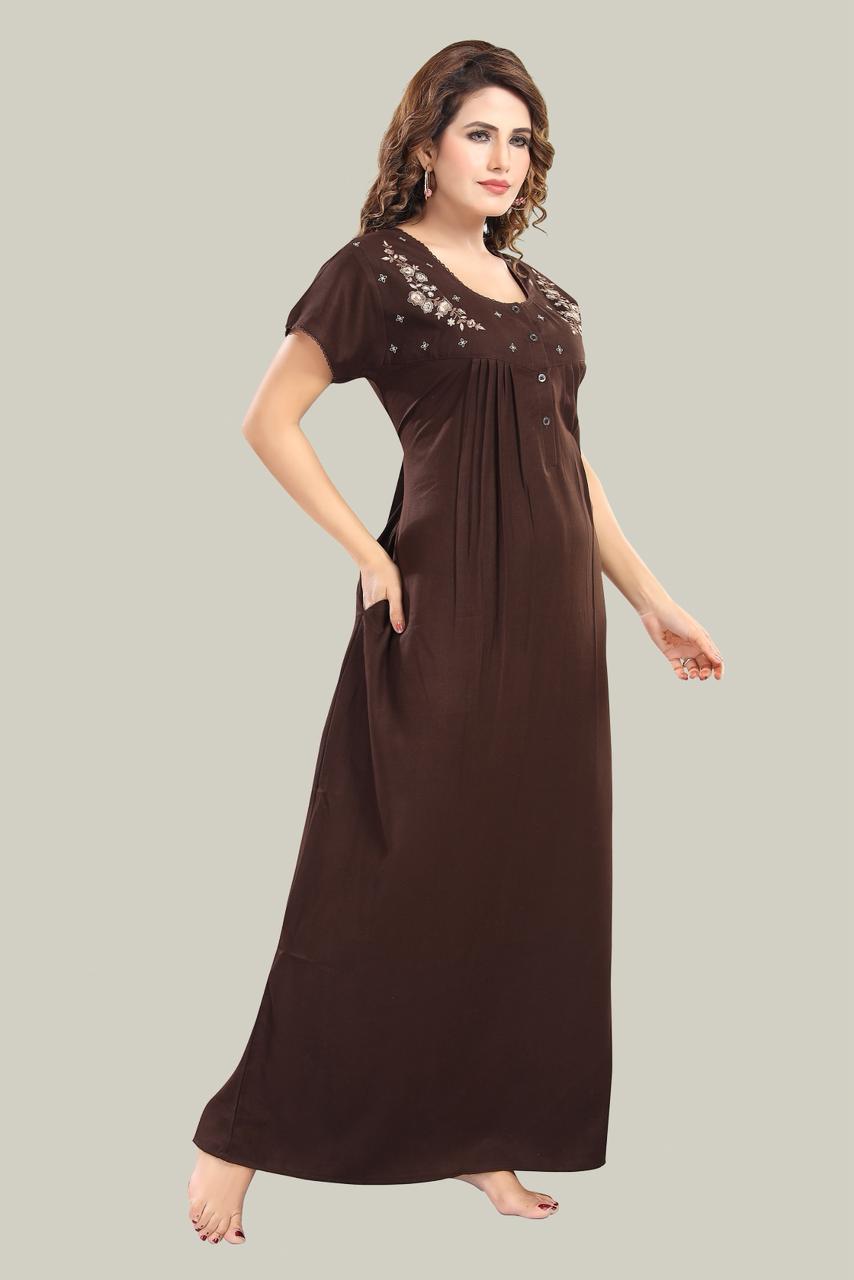 Experience the Nisha nightgown: a premium Super Soft Nightgown which is shrink-resistant, with zero maintenance. Its enduring smoothness and no-color bleeding ensure lasting elegance and comfort. Perfect for those who crave effortless luxury in 24/7 wear.