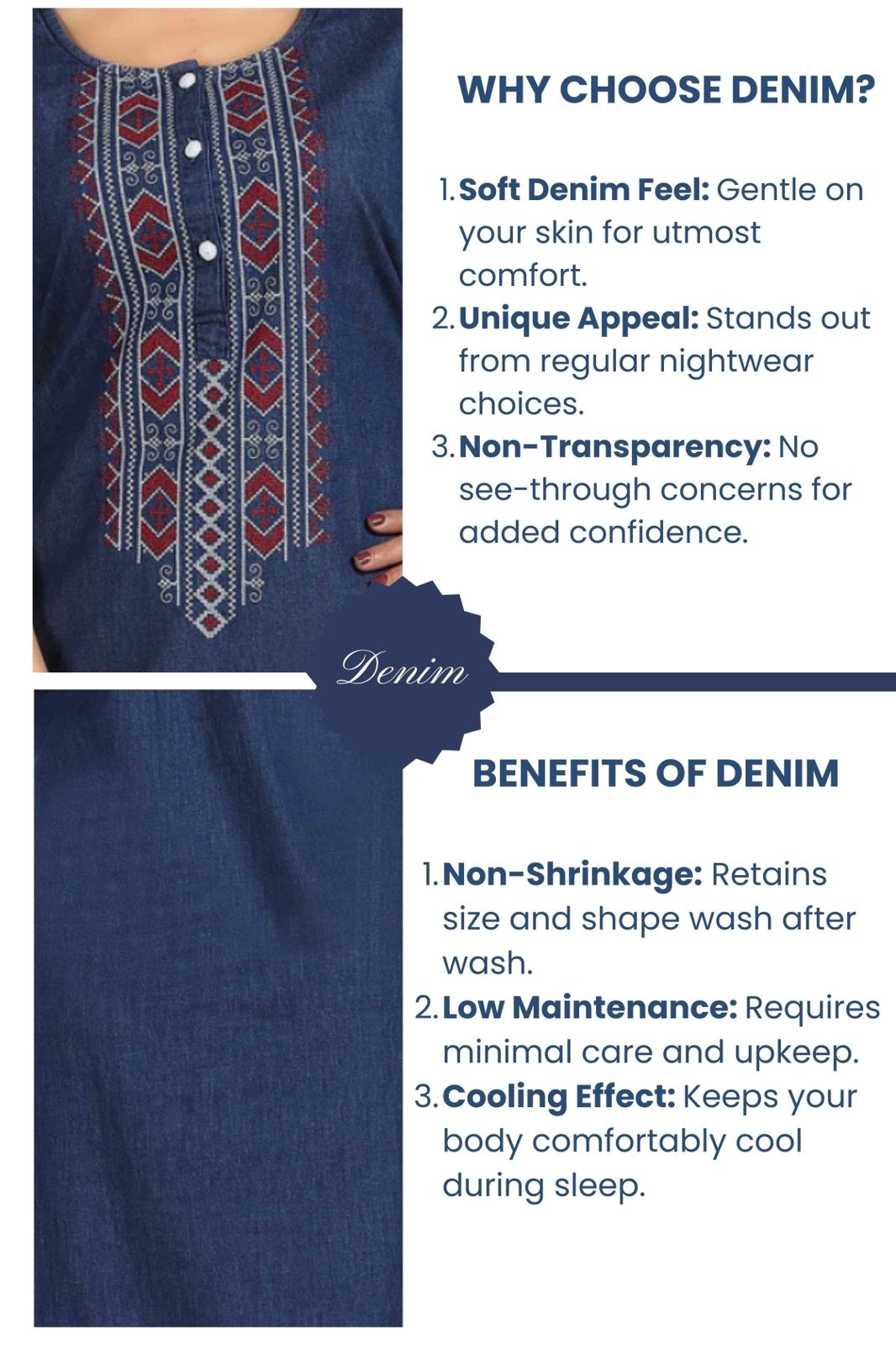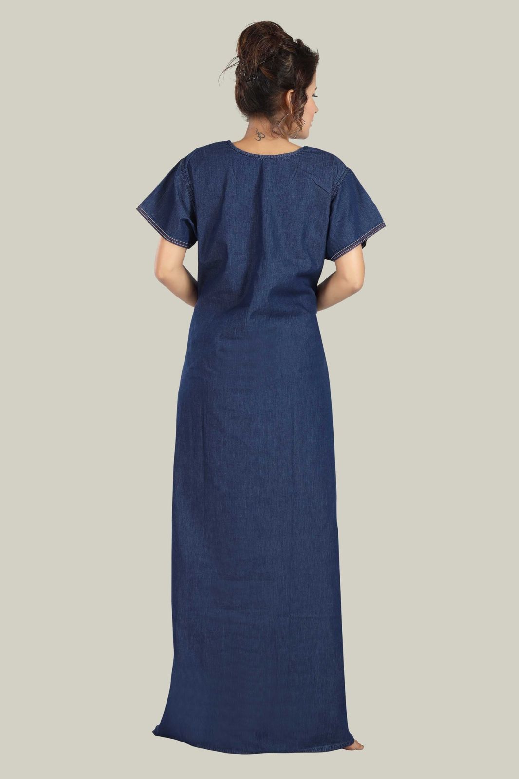 Experience ultimate comfort in our Alora soft denim nightgown. Made from the softest denim, it ensures a peaceful night's sleep. The satin neckline and side pocket provides a touch of luxury and functionality.