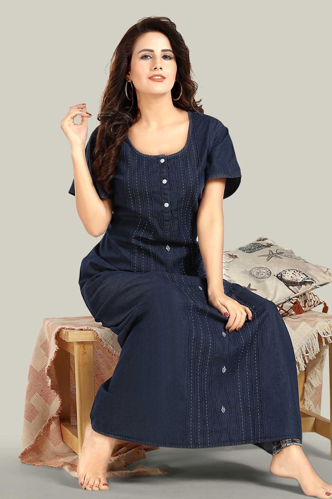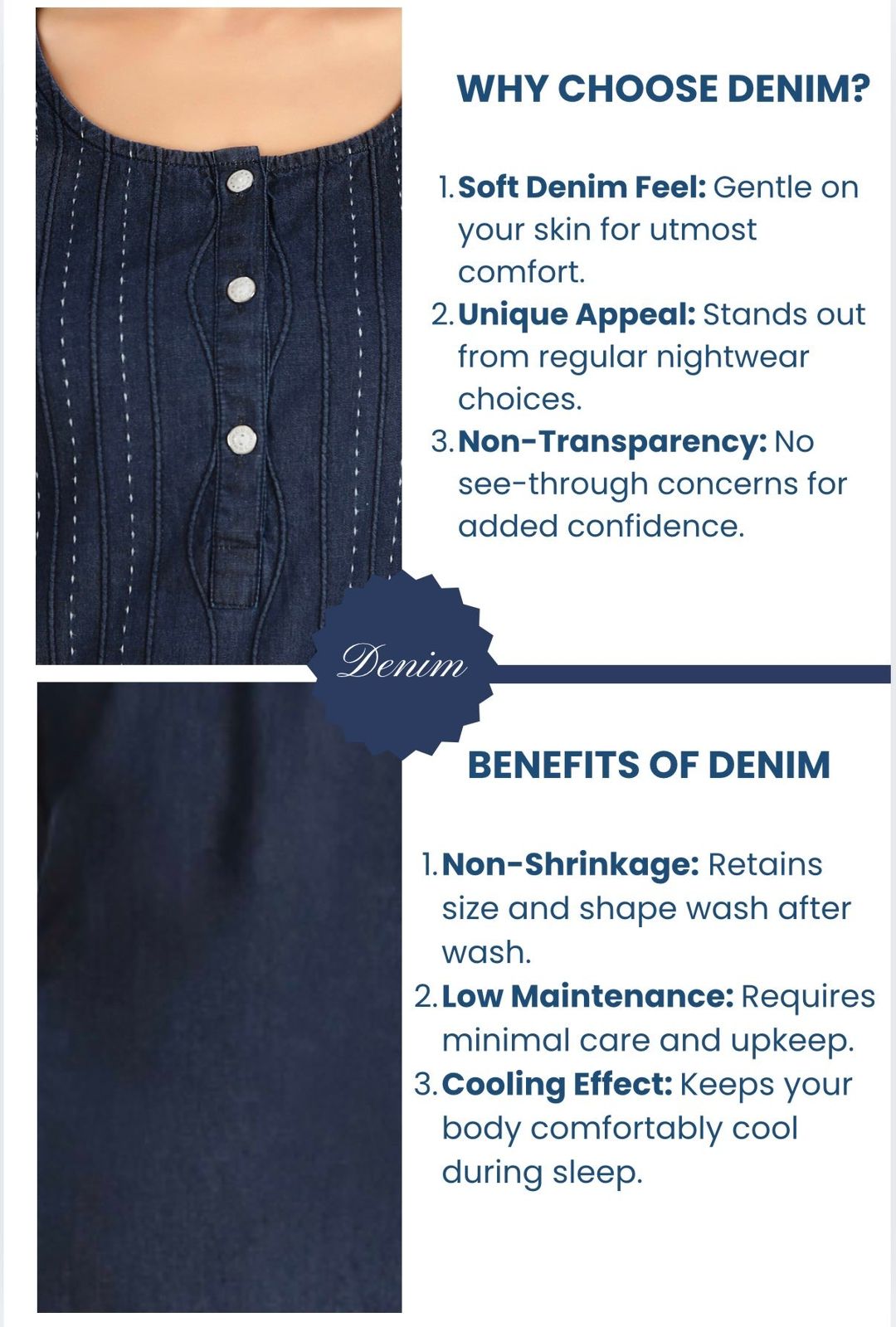 Experience ultimate comfort in our Amelia soft denim nightgown. Made from the softest denim, it ensures a peaceful night's sleep. The satin neckline and side pocket provides a touch of luxury and functionality.