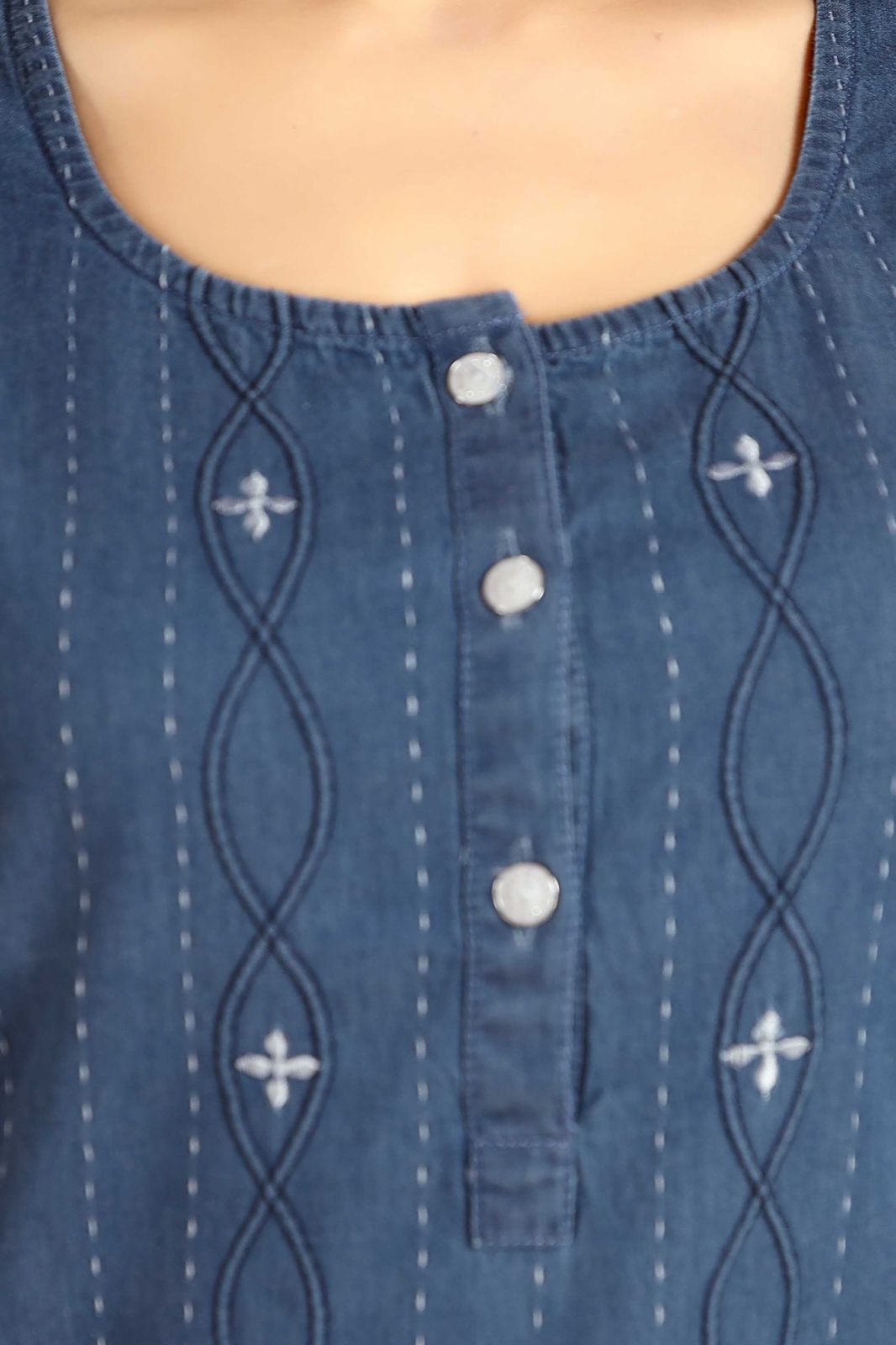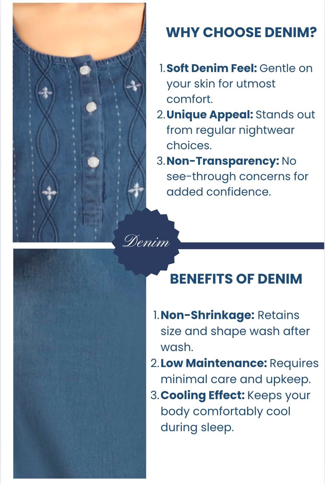 Experience ultimate comfort in our Salina soft denim nightgown. Made from the softest denim, it ensures a peaceful night's sleep. The satin neckline and side pocket provides a touch of luxury and functionality.