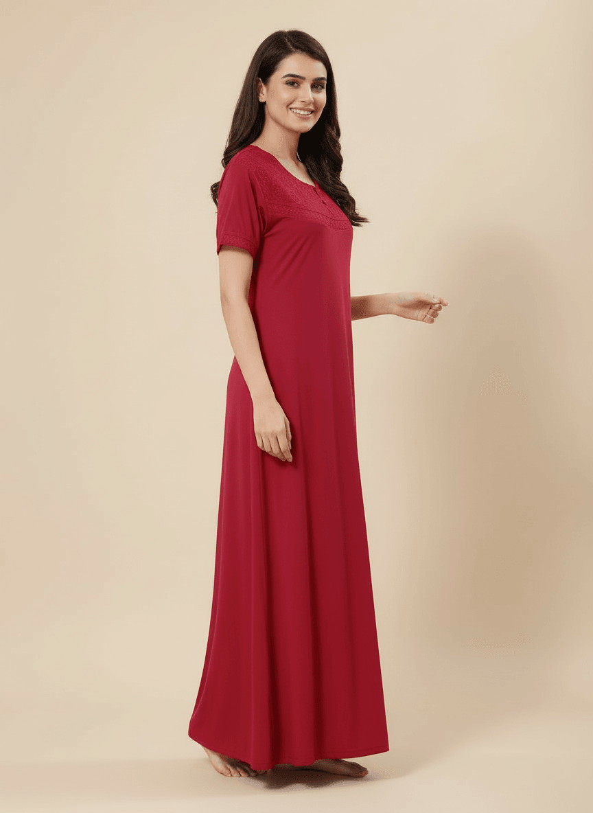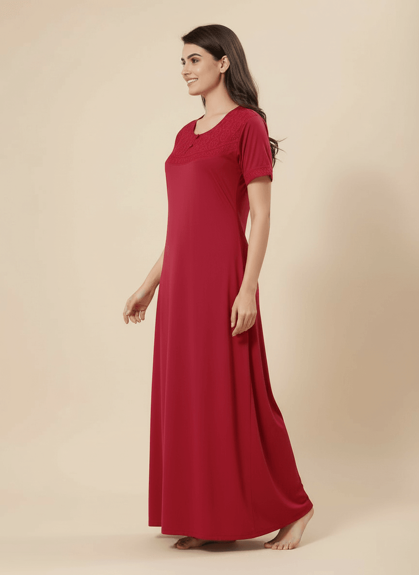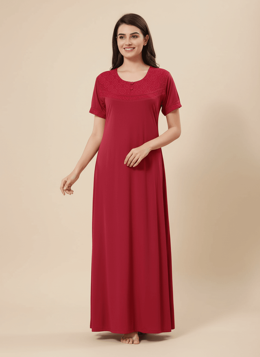 Experience the Anvika nightgown: a premium Malai Fabric nightgown crafted for unmatched softness and everyday luxury. Designed to stay flawless wash after wash, Alifya is completely shrink-resistant, colour-safe, and zero-maintenance. Its breathable, skin-friendly feel makes it perfect for effortless 24/7 comfort with a touch of elegance.