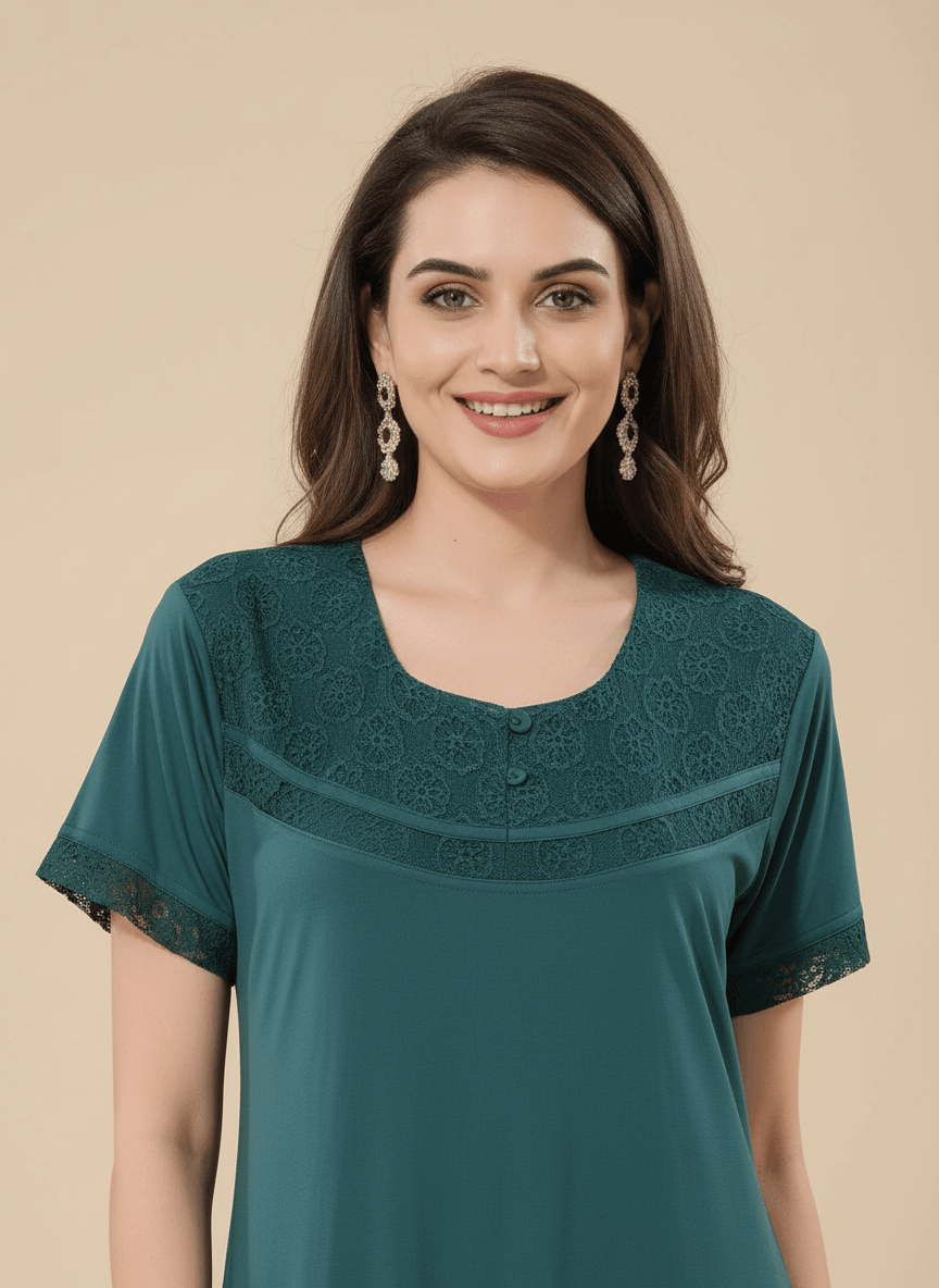 Experience the Anvika nightgown: a premium Malai Fabric nightgown crafted for unmatched softness and everyday luxury. Designed to stay flawless wash after wash, Alifya is completely shrink-resistant, colour-safe, and zero-maintenance. Its breathable, skin-friendly feel makes it perfect for effortless 24/7 comfort with a touch of elegance.