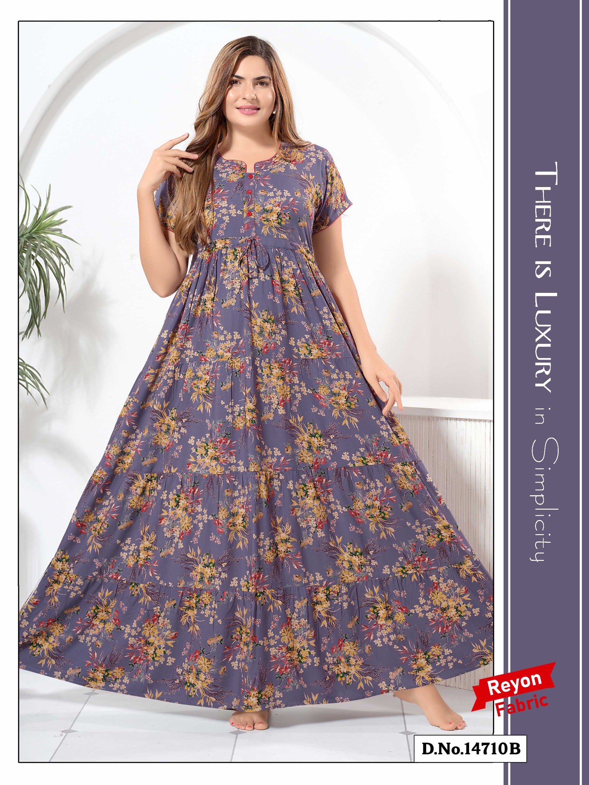 Lavender Reyon Cotton Umbrella Nightgown Elina