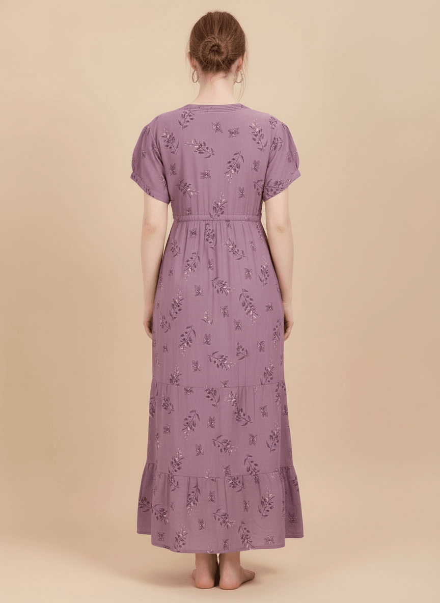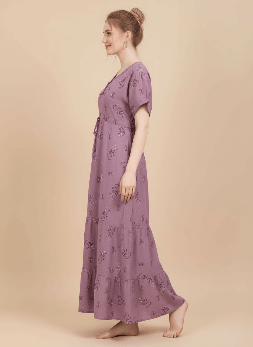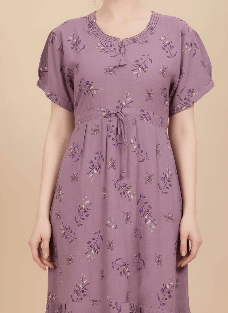Experience the Monisha nightgown: a premium Supima Cotton Umbrella Nightgown designed for effortless comfort and timeless elegance. Crafted from the finest Supima Cotton, it’s a zero-maintenance piece — no shrinkage, no color bleeding, and absolutely no ironing needed. Its unique three-layer umbrella flare gives it a beautiful flow and adds a touch of everyday luxury. Perfect to lounge in or wear throughout the day, the Aarohi nightgown combines comfort with chic sophistication.