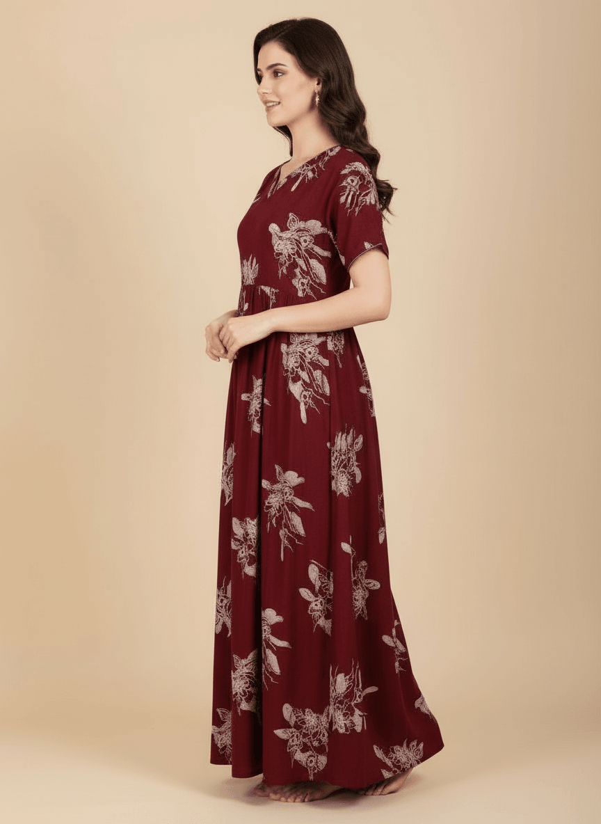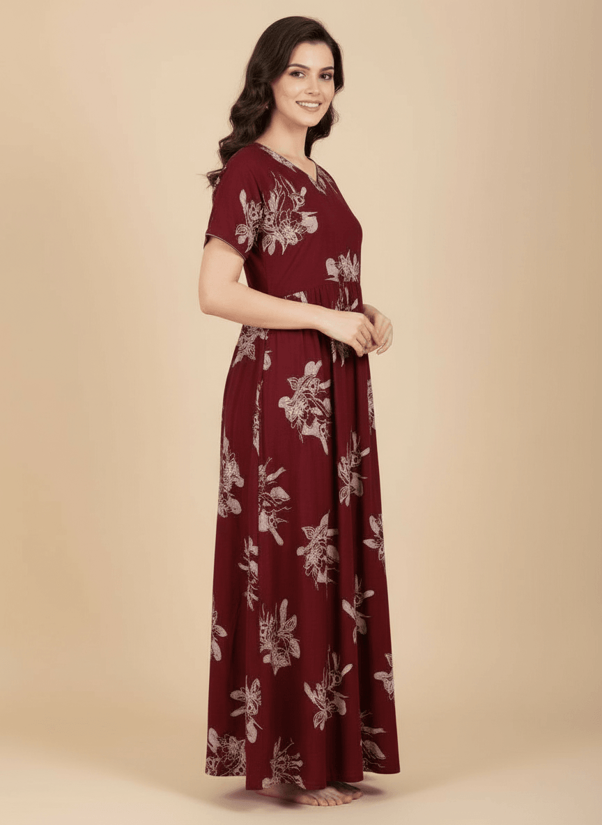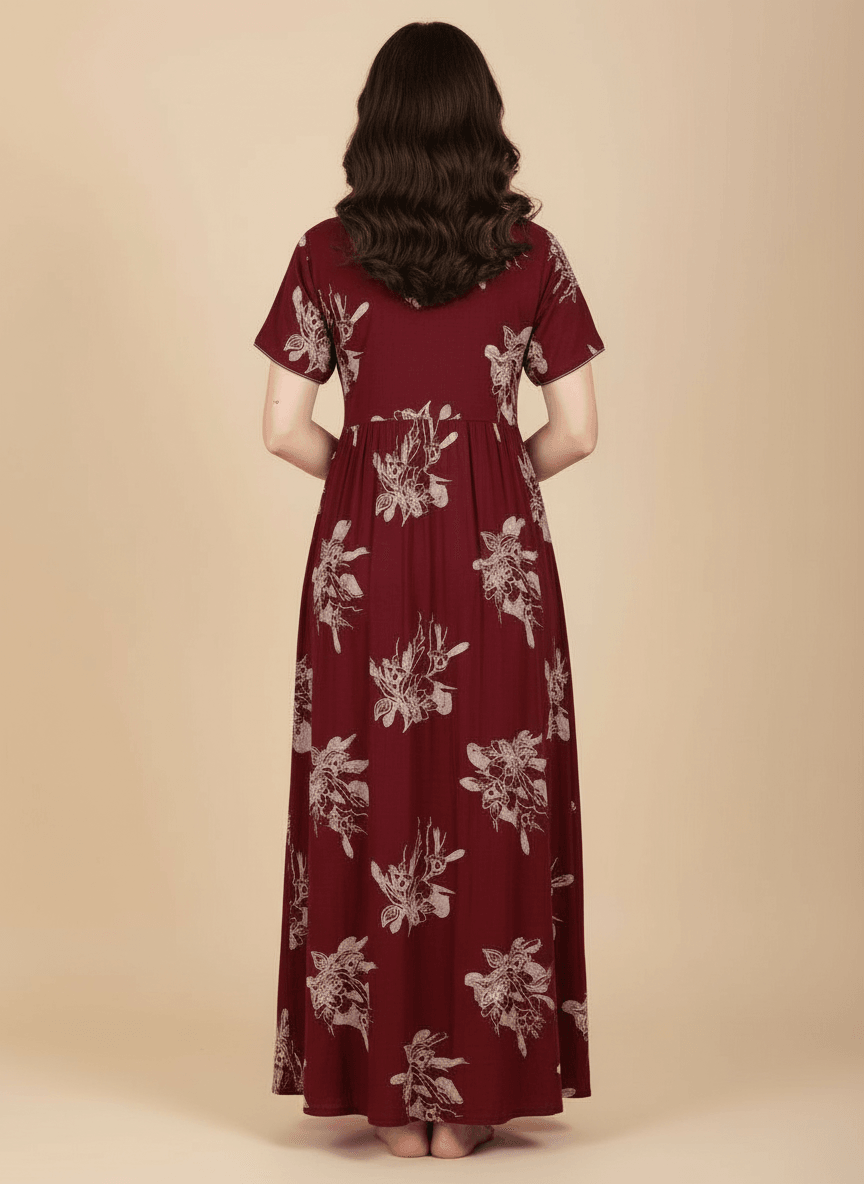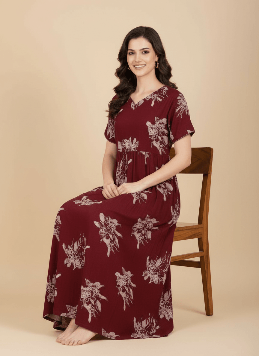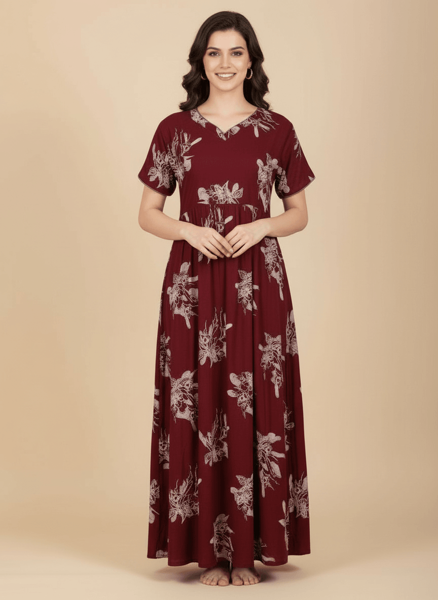 Experience the Ziva nightgown: a premium Supima Cotton Umbrella Nightgown designed for effortless comfort and timeless elegance. Crafted from the finest Supima Cotton, it’s a zero-maintenance piece — no shrinkage, no color bleeding, and absolutely no ironing needed. Its unique three-layer umbrella flare gives it a beautiful flow and adds a touch of everyday luxury. Perfect to lounge in or wear throughout the day, the Aarohi nightgown combines comfort with chic sophistication.