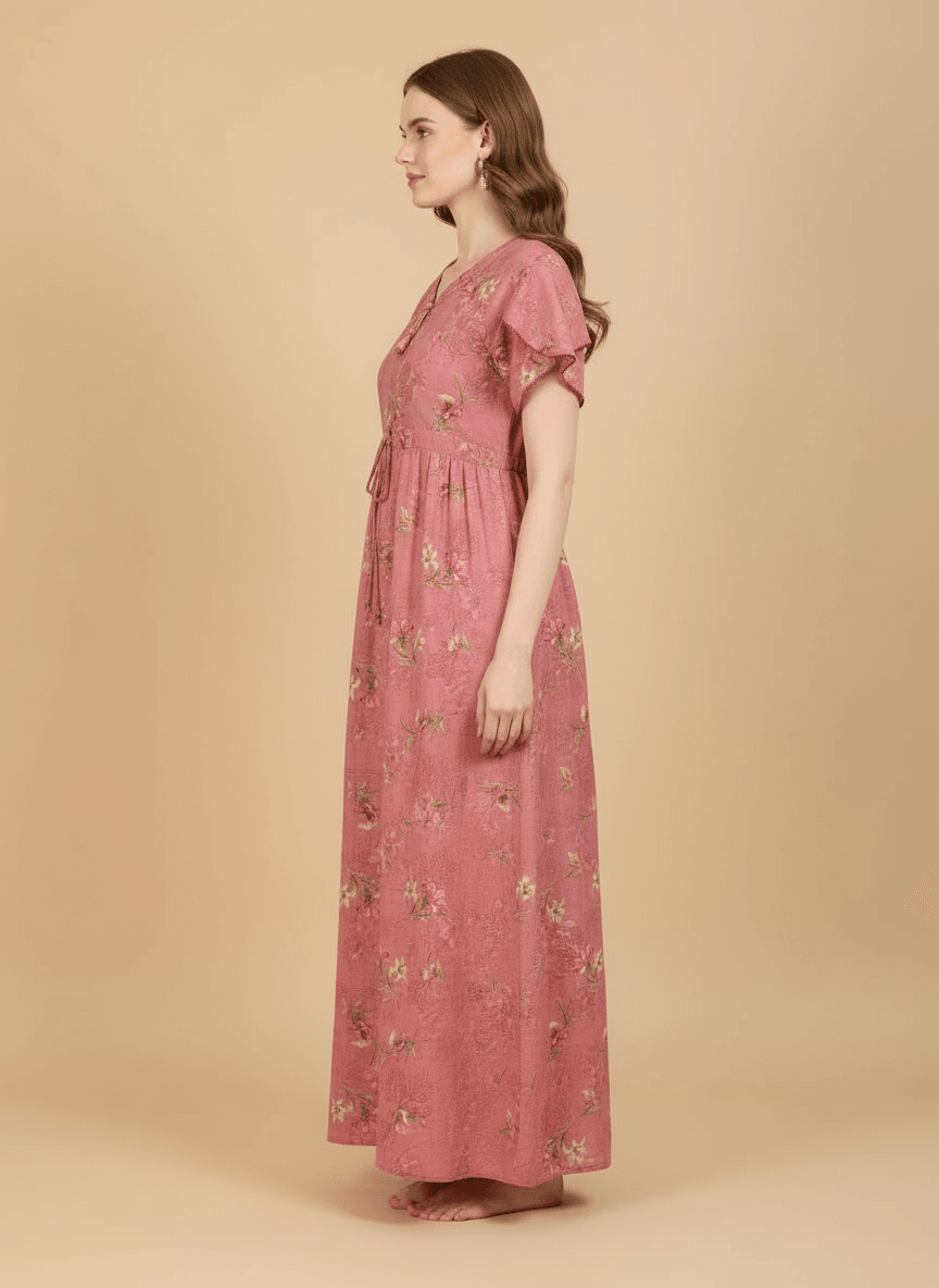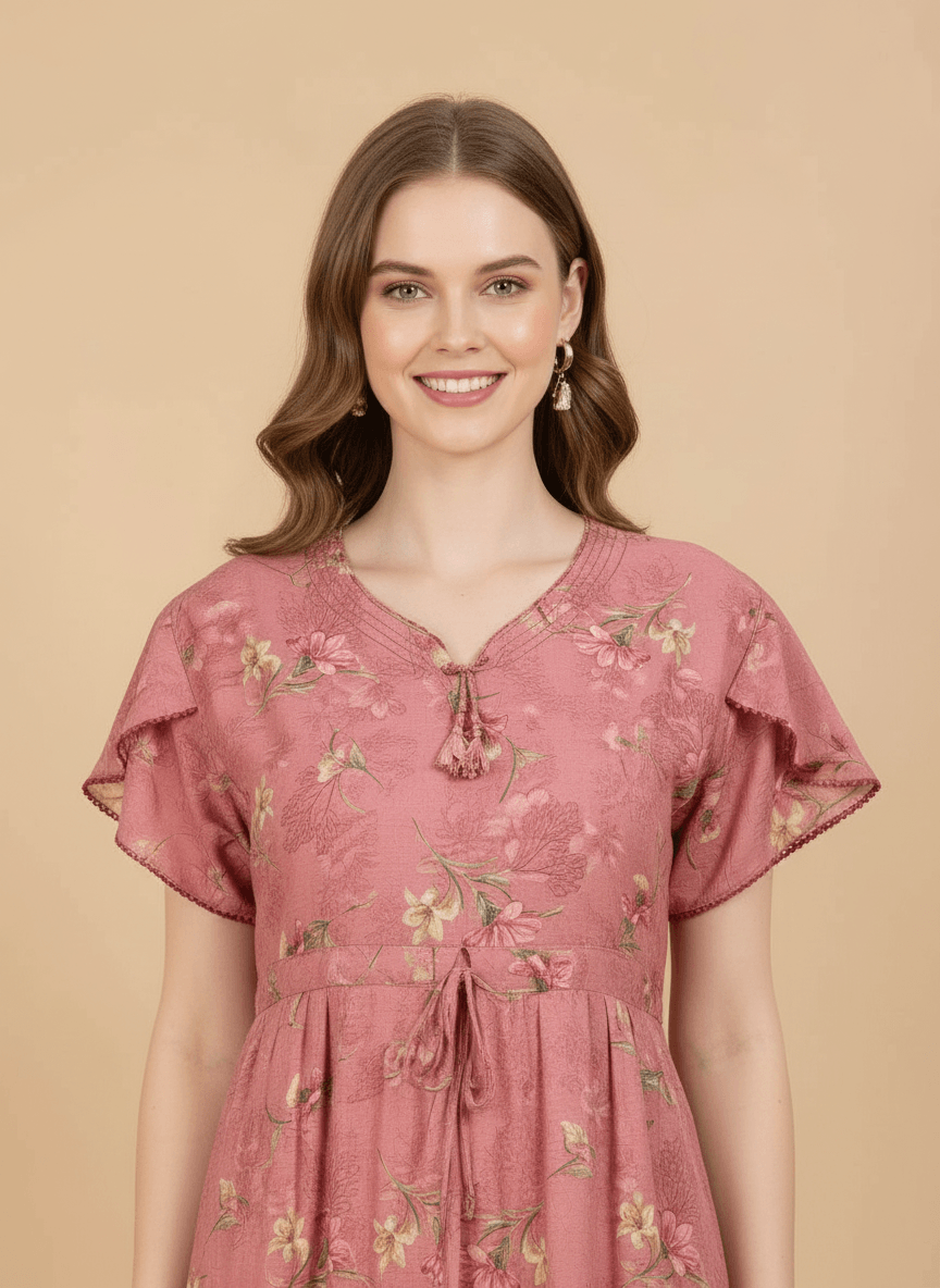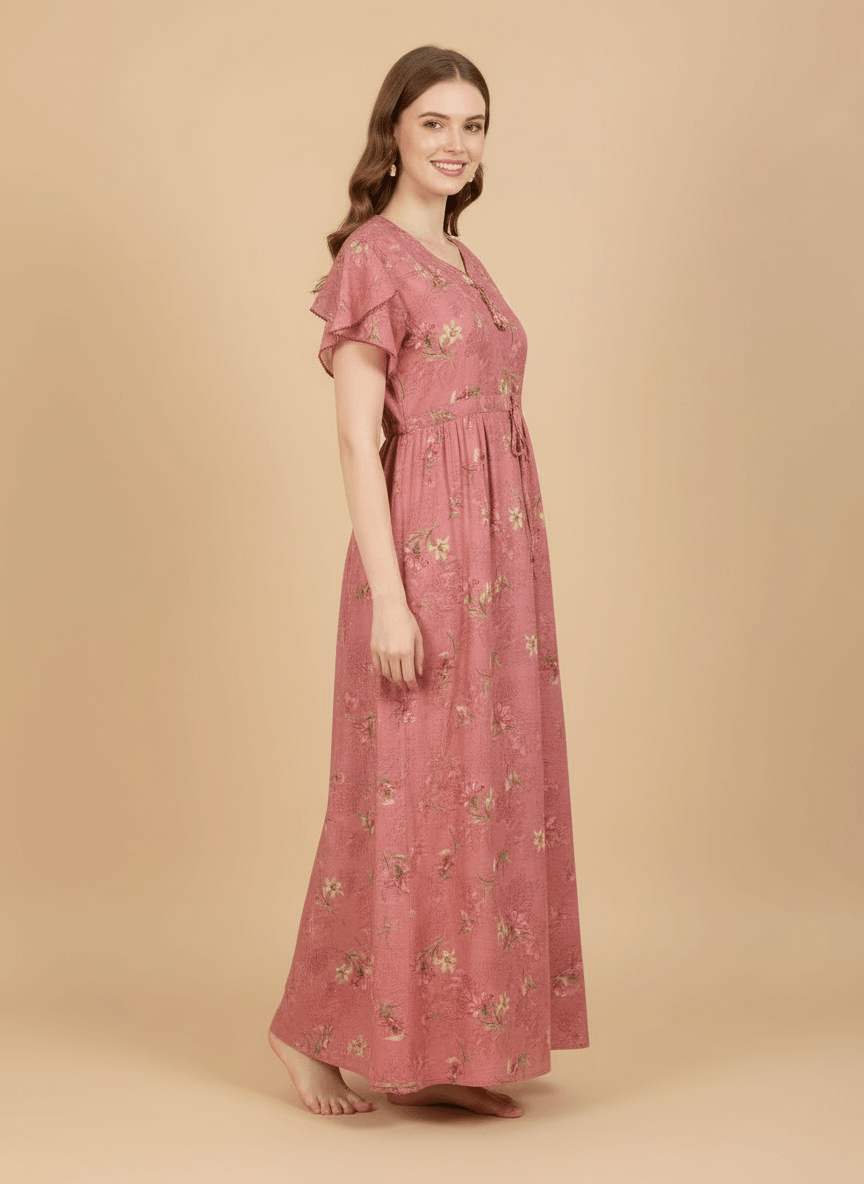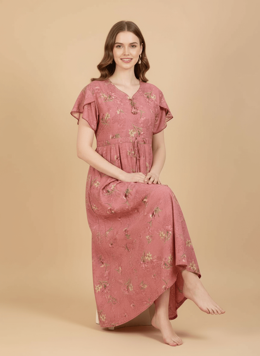 Experience the Prisha nightgown: a premium Supima Cotton Umbrella Nightgown designed for effortless comfort and timeless elegance. Crafted from the finest Supima Cotton, it’s a zero-maintenance piece — no shrinkage, no color bleeding, and absolutely no ironing needed. Its unique three-layer umbrella flare gives it a beautiful flow and adds a touch of everyday luxury. Perfect to lounge in or wear throughout the day, the Aarohi nightgown combines comfort with chic sophistication.