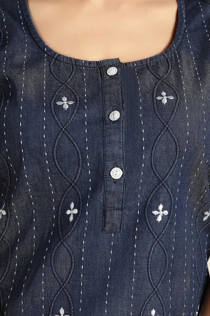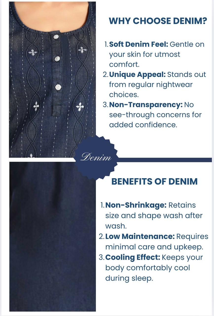 Experience ultimate comfort in our Salina soft denim nightgown. Made from the softest denim, it ensures a peaceful night's sleep. The satin neckline and side pocket provides a touch of luxury and functionality.
