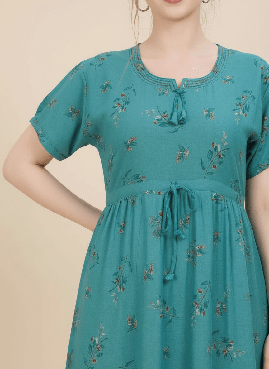 Experience the Monisha nightgown: a premium Supima Cotton Umbrella Nightgown designed for effortless comfort and timeless elegance. Crafted from the finest Supima Cotton, it’s a zero-maintenance piece — no shrinkage, no color bleeding, and absolutely no ironing needed. Its unique three-layer umbrella flare gives it a beautiful flow and adds a touch of everyday luxury. Perfect to lounge in or wear throughout the day, the Aarohi nightgown combines comfort with chic sophistication.
