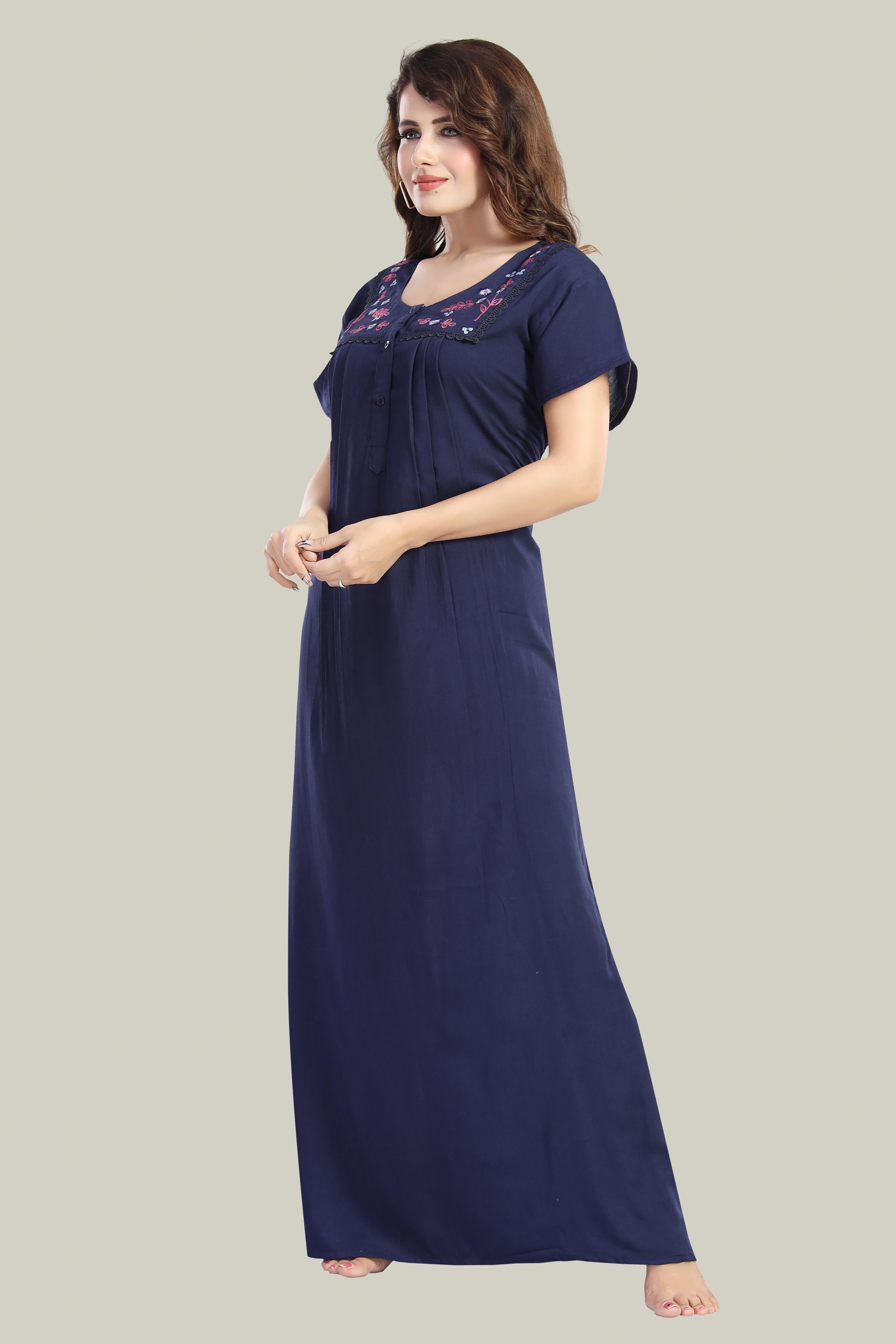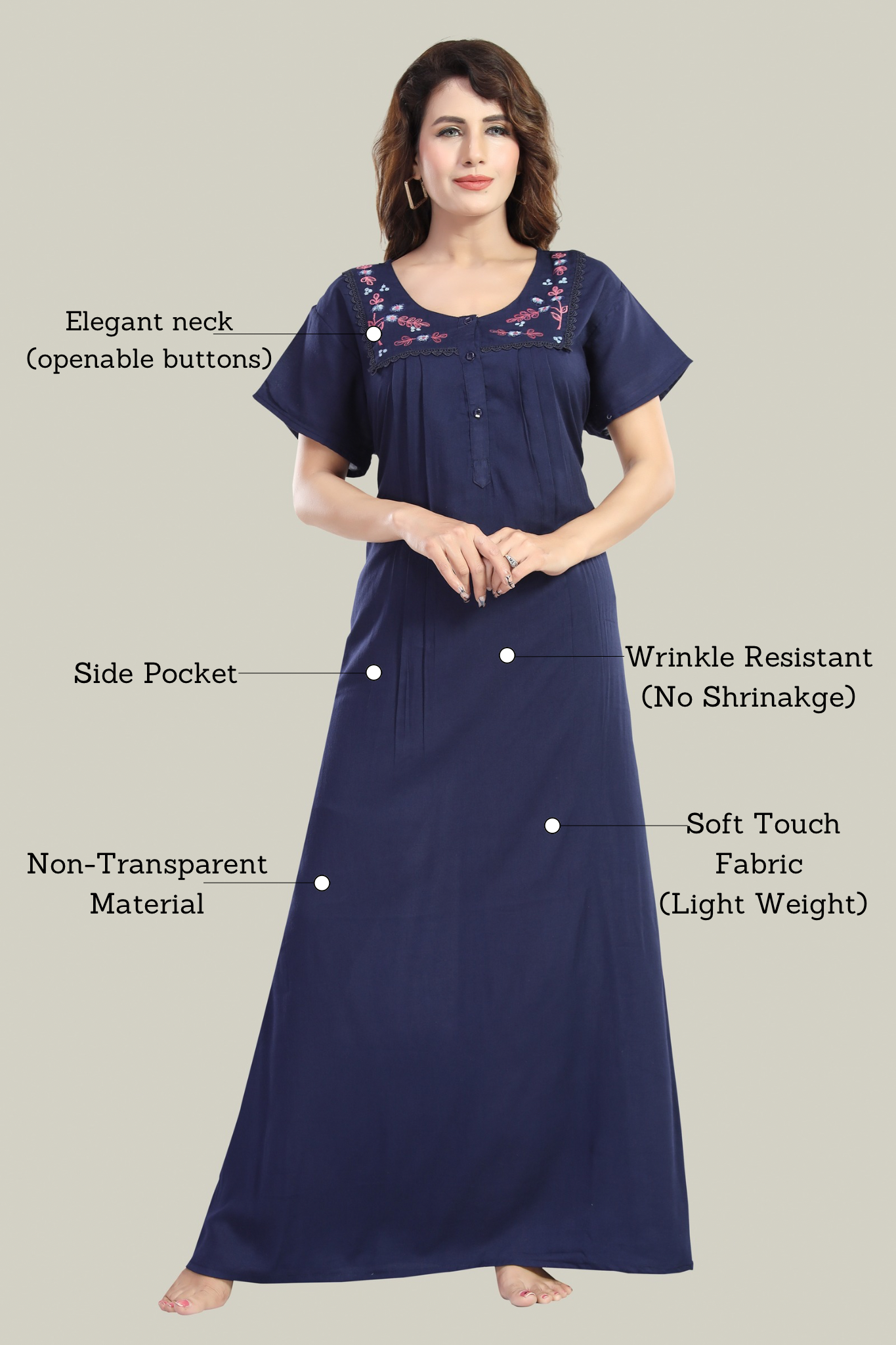 Experience ultimate comfort in our Monali bamboo cotton nightgown. Made from ultra-soft bamboo cotton, it ensures maximum comfort and style for your nights. The front pleats and elegant embroidery add a touch of sophistication, while the pocket offers functionality. Enjoy its no-shrinkage, no-color-bleeding, and no-ironing benefits for hassle-free care.